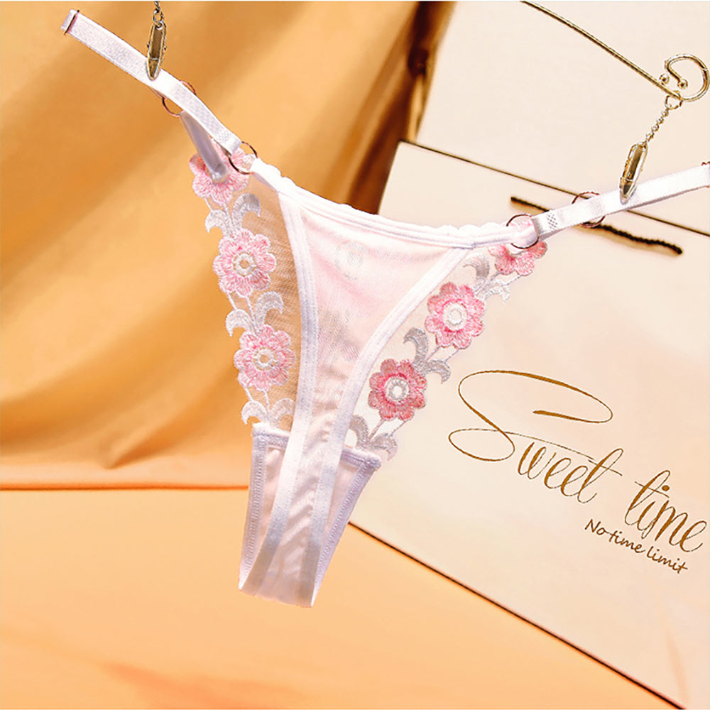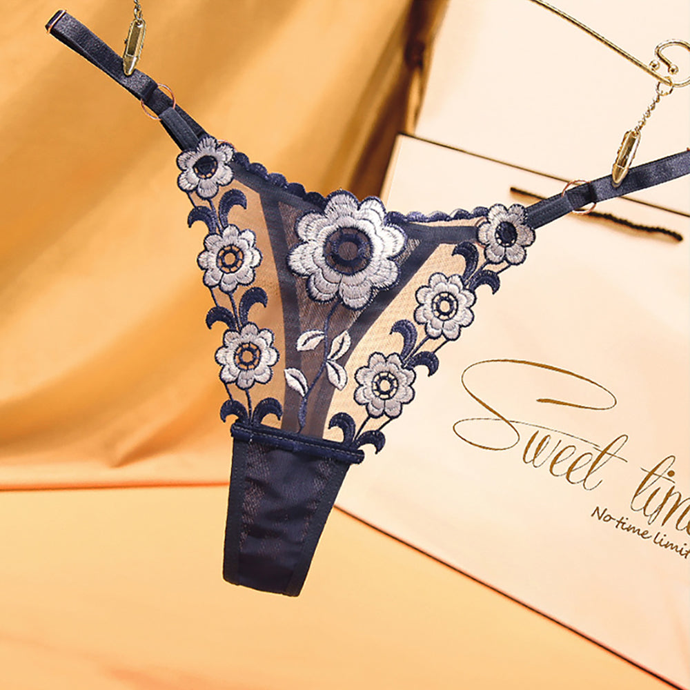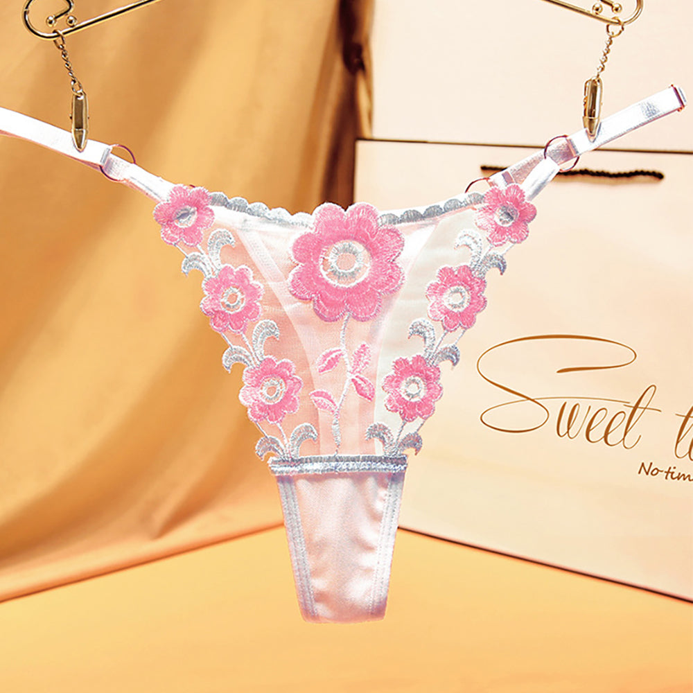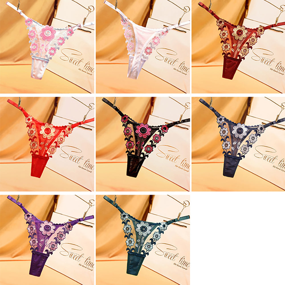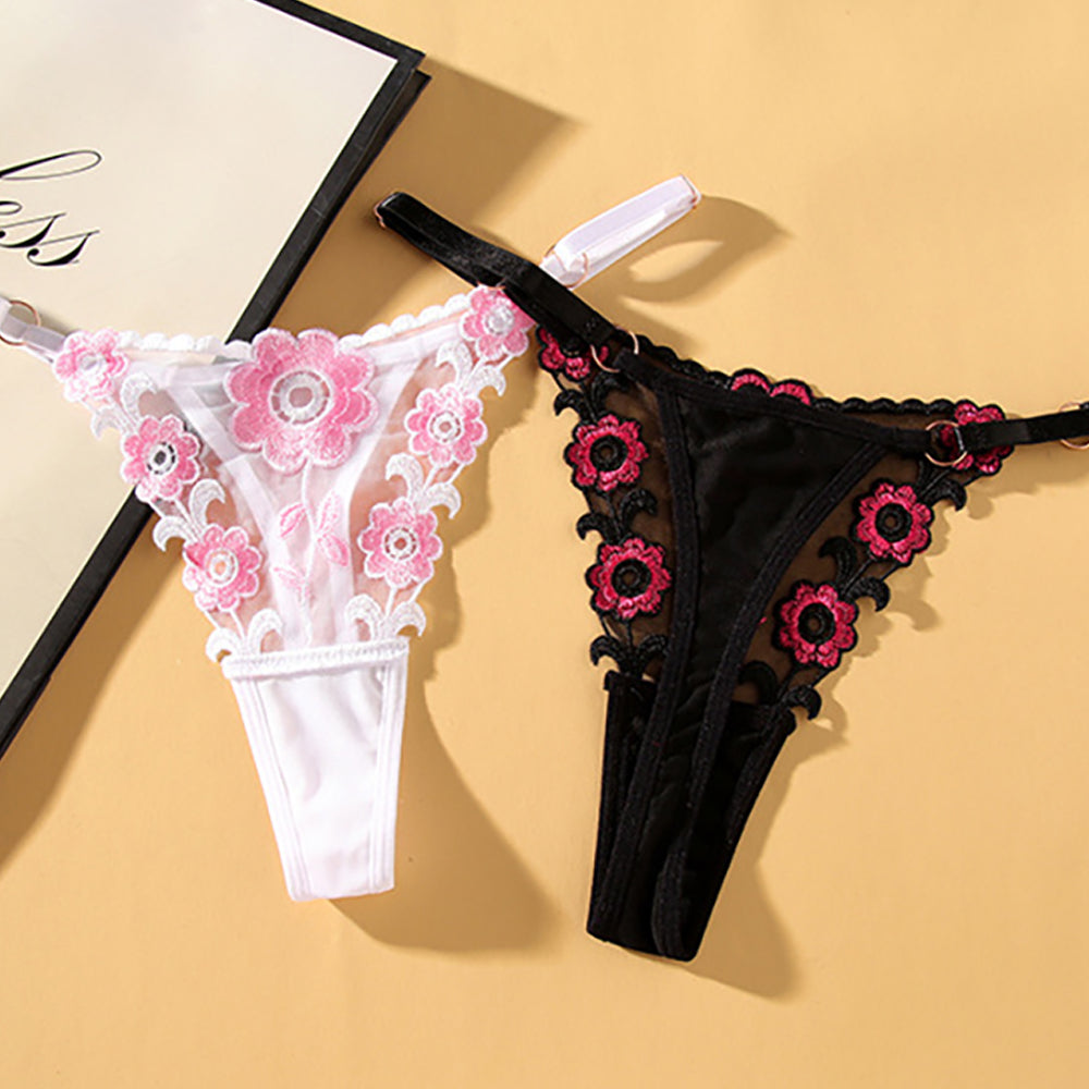 Ladies Sexy Mesh Embroidered Floral Panties G-String