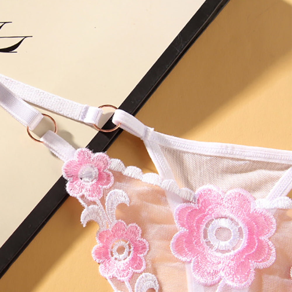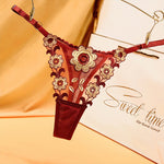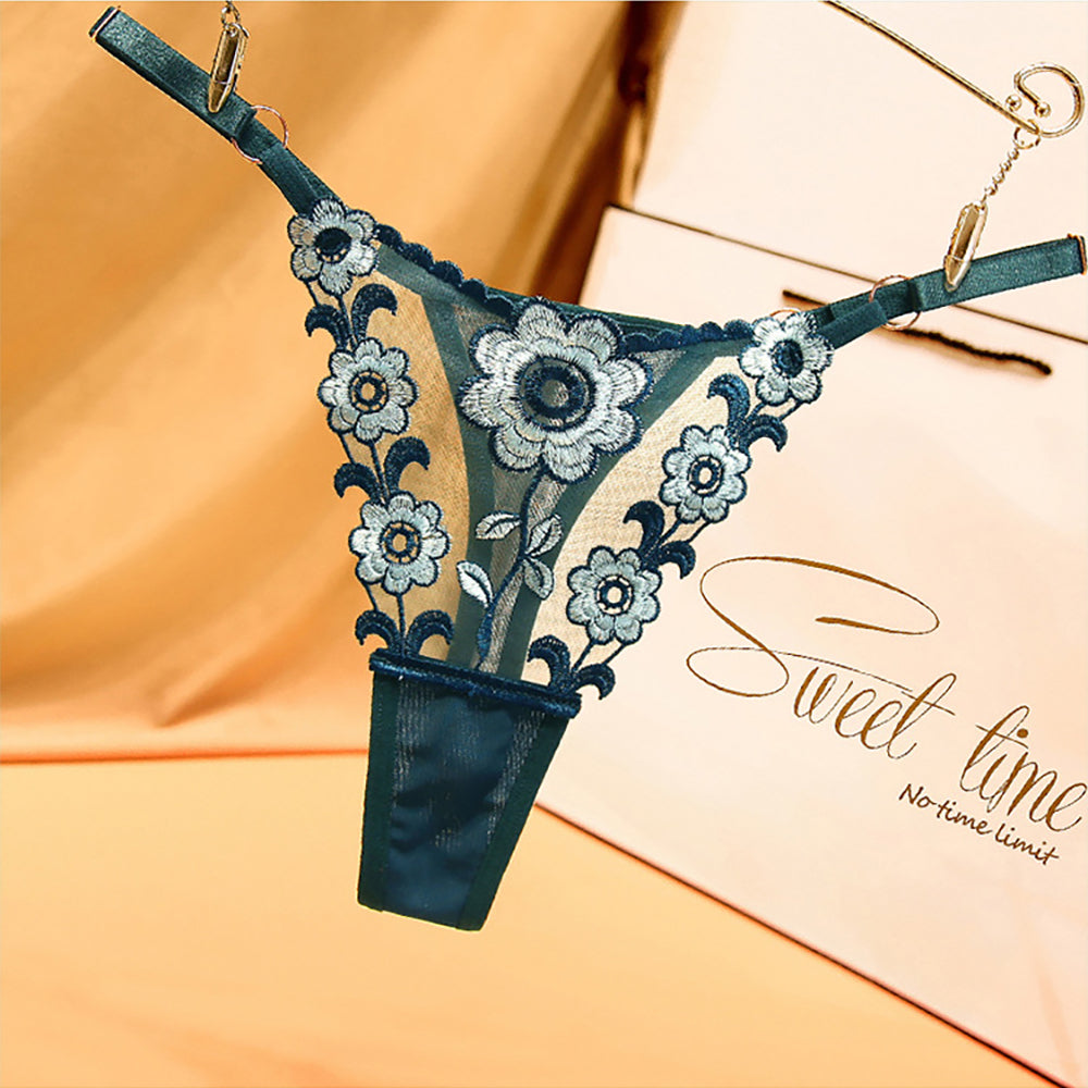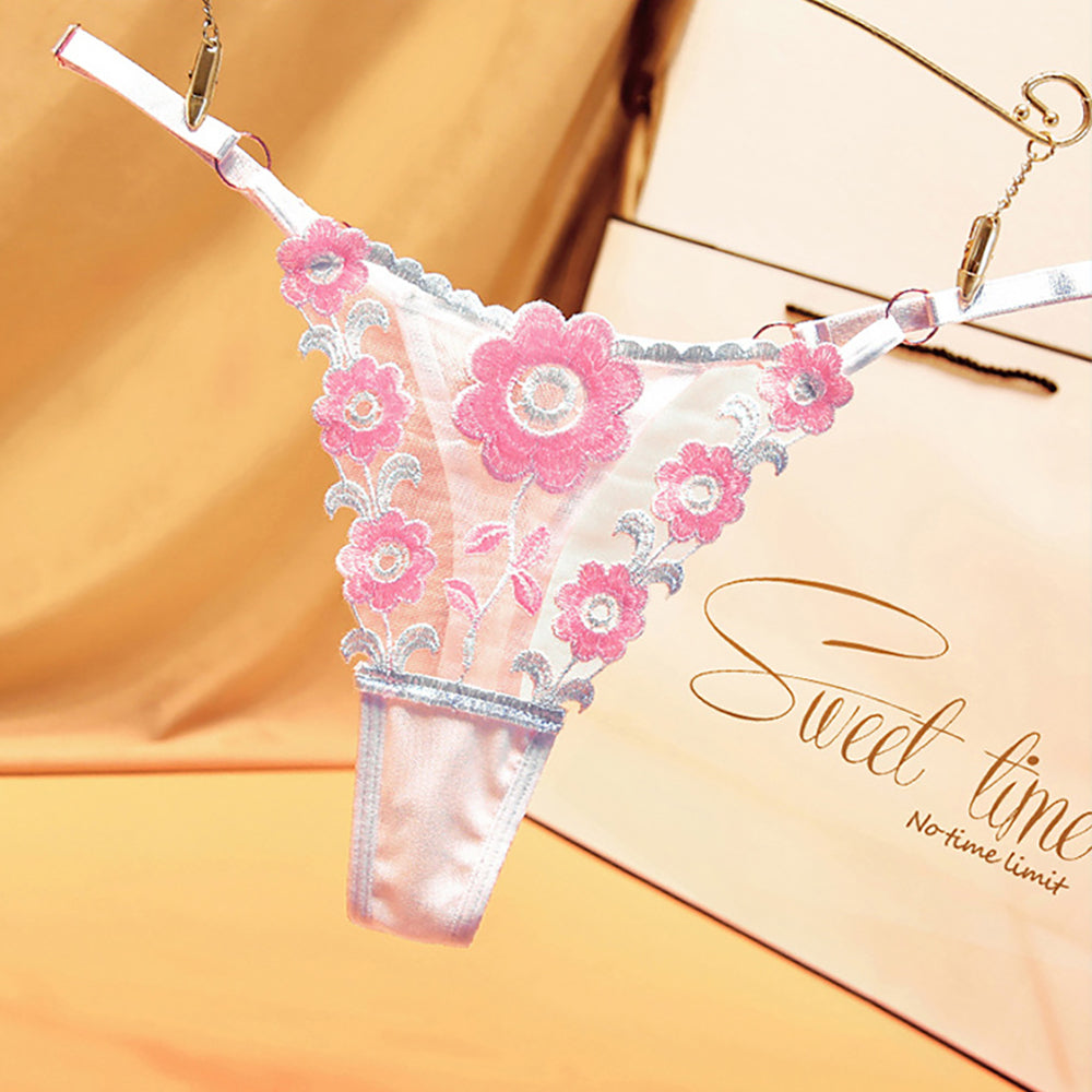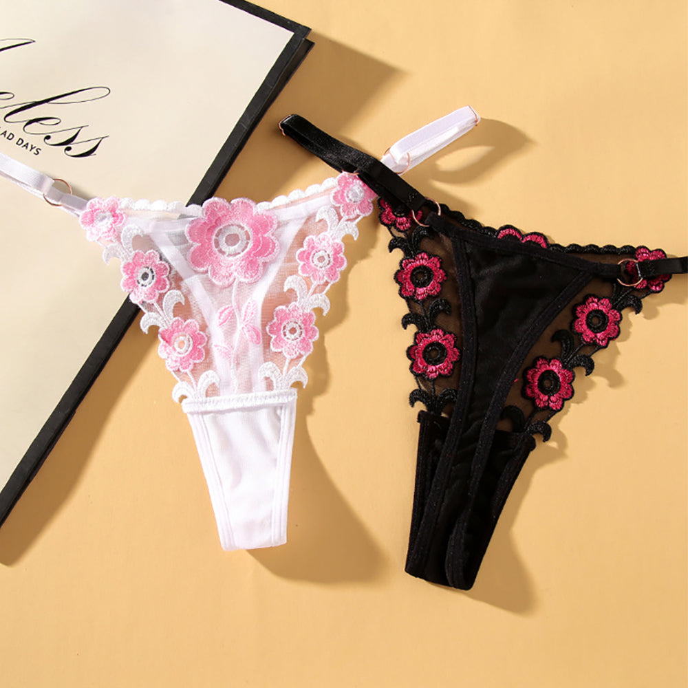 Ladies Sexy Mesh Embroidered Floral Panties G-String