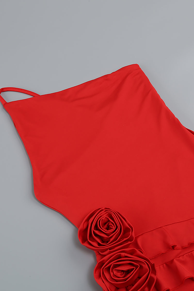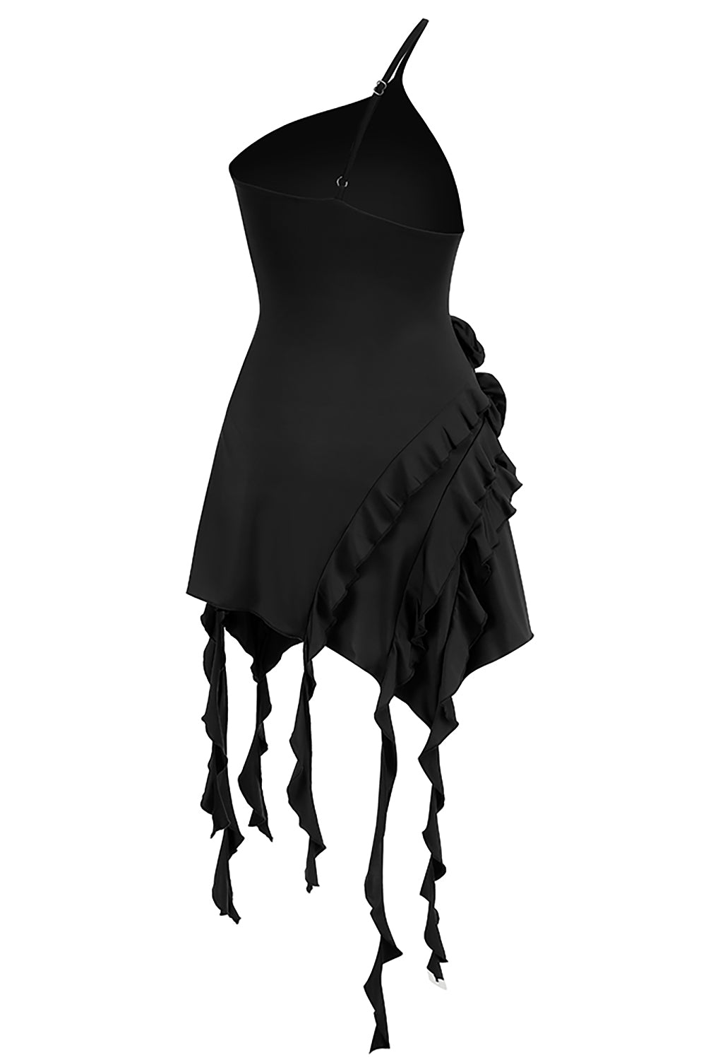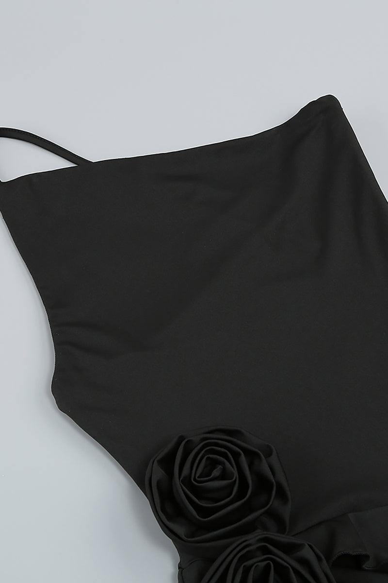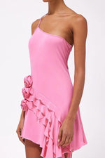 One Shoulder Irregular 3D Flower Viscose Dress