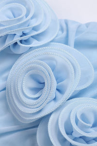 Floral Applique Halter-neck Jersey Maxi Gown in Blue
